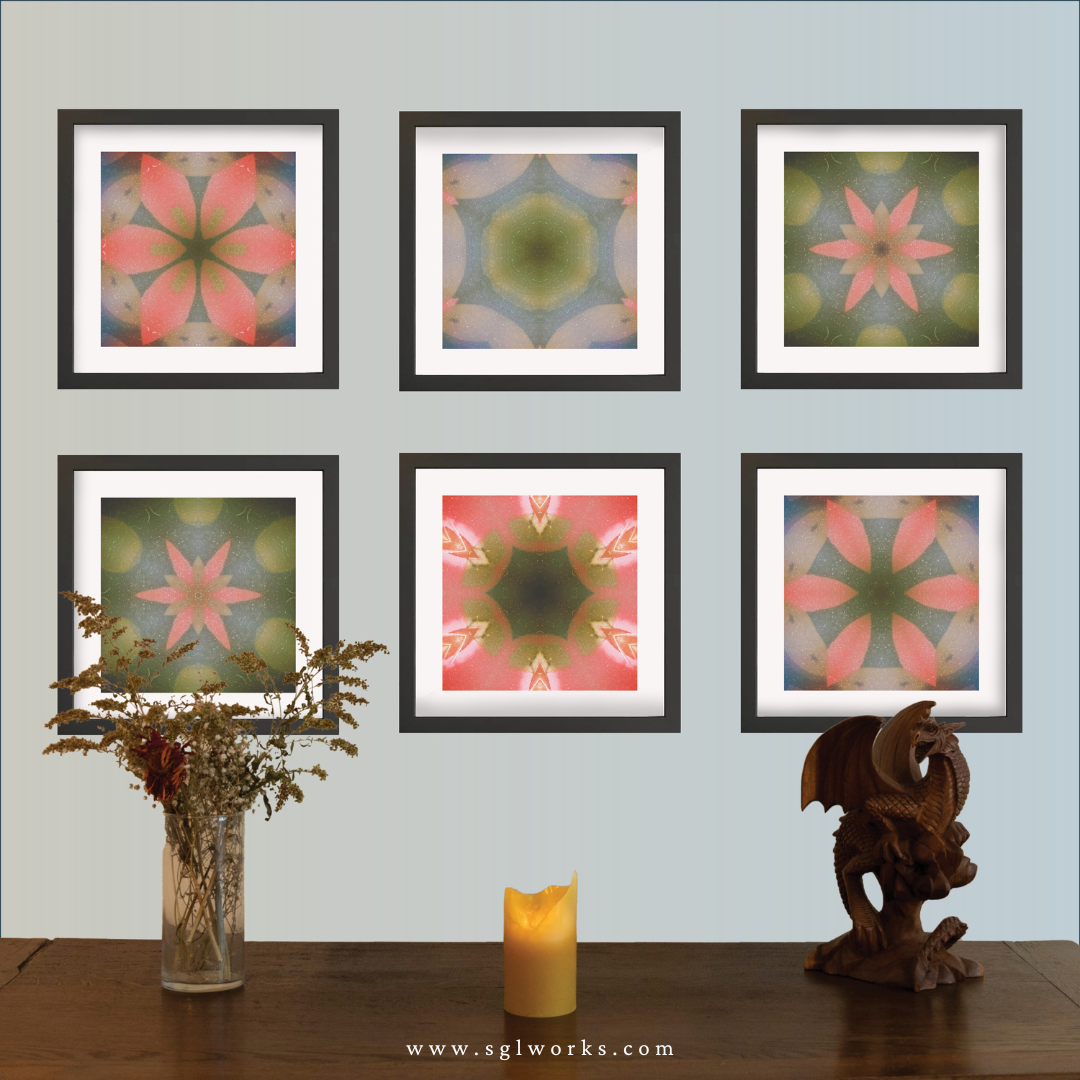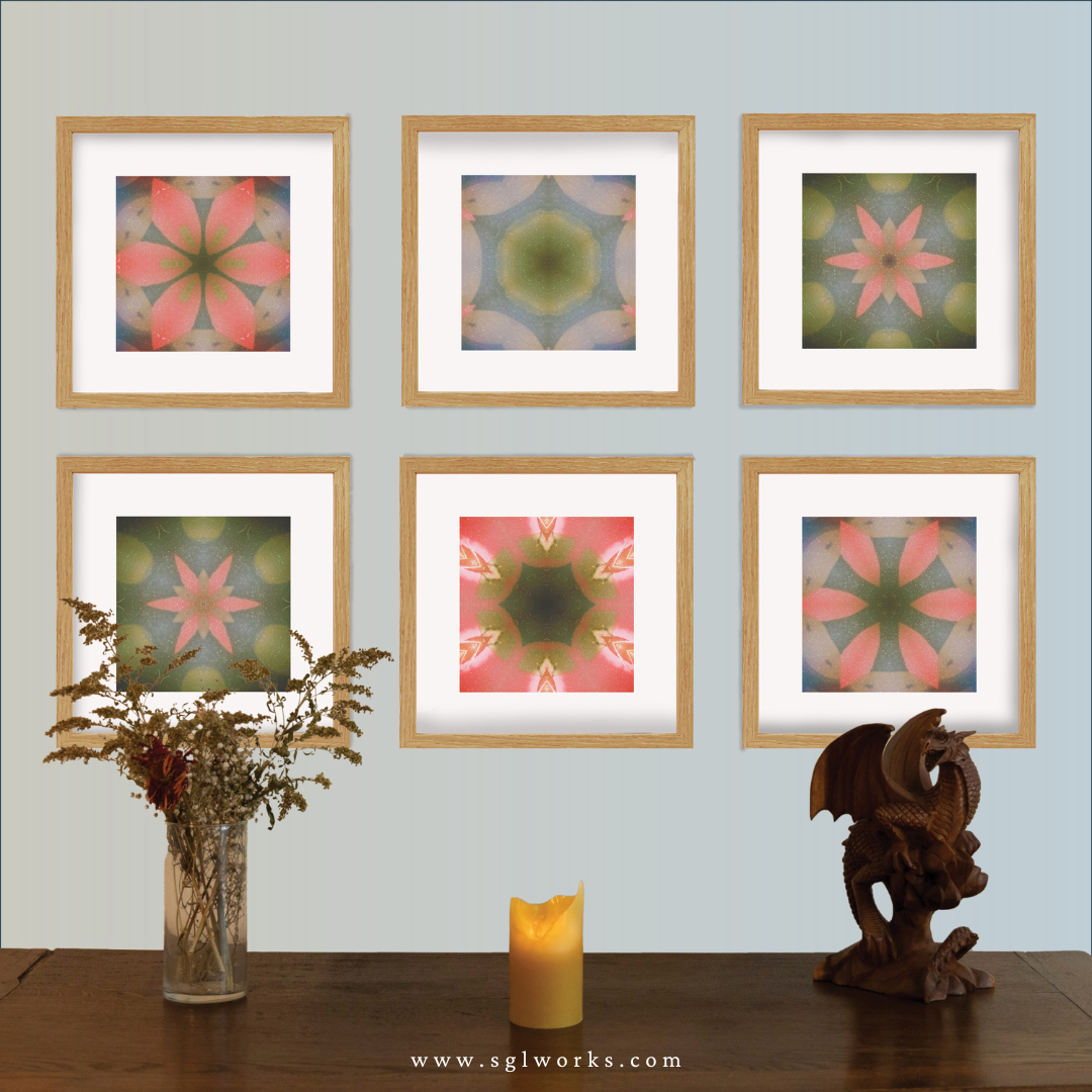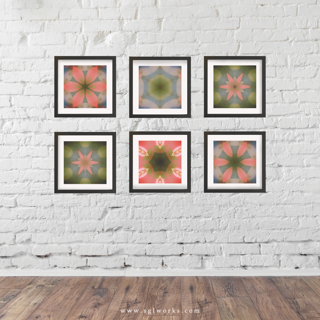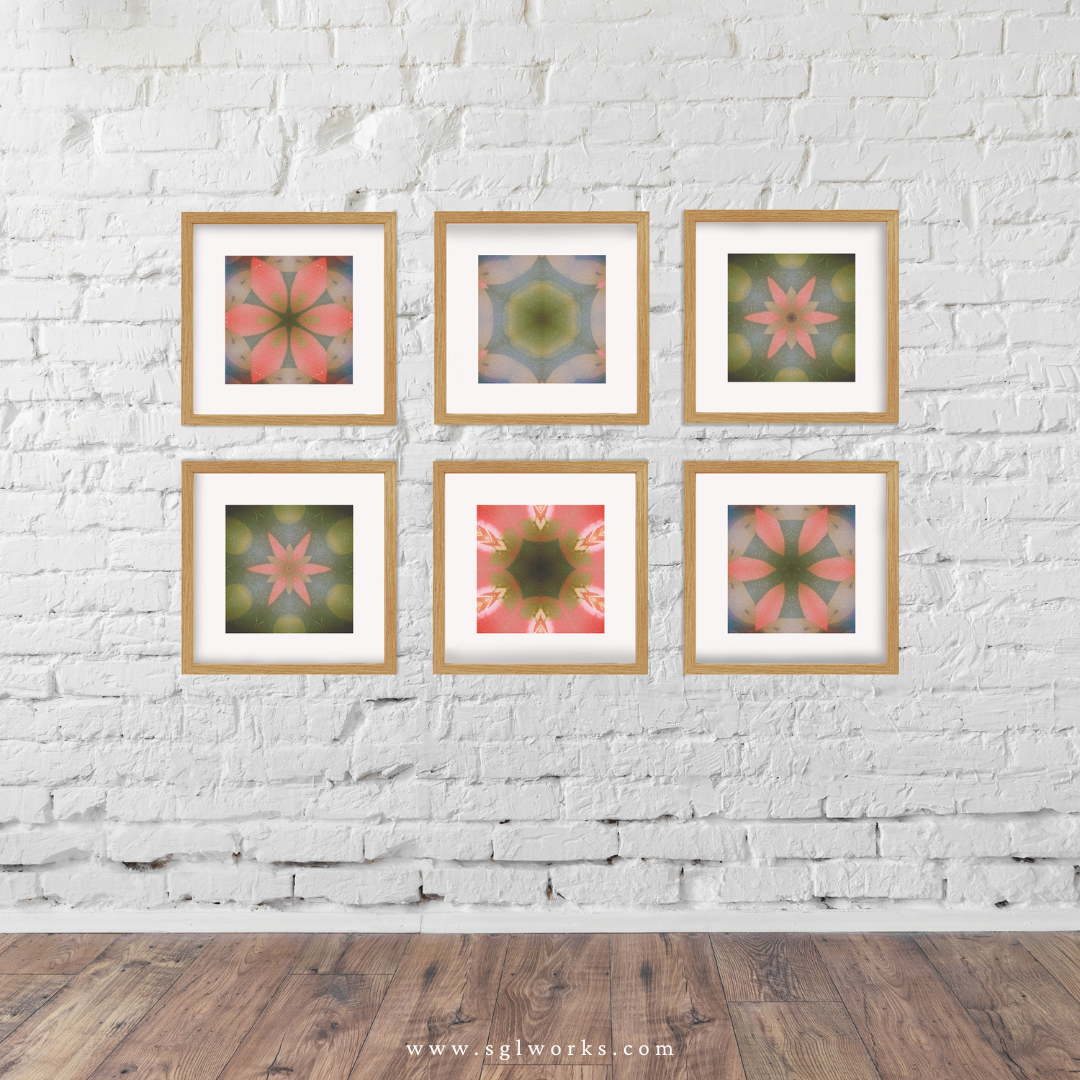 Set 6 Framed Prints, each with the following dimensions: W 13.75" x H 13.75" x D 0.875"; W 17.75" x H 17.75" x D 0.875"