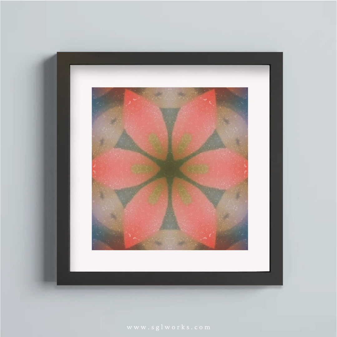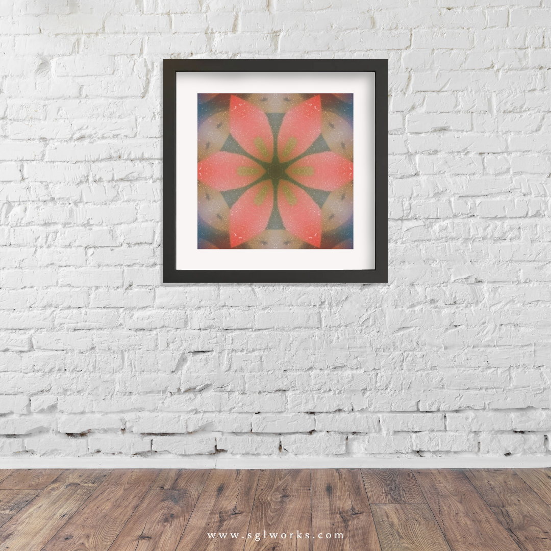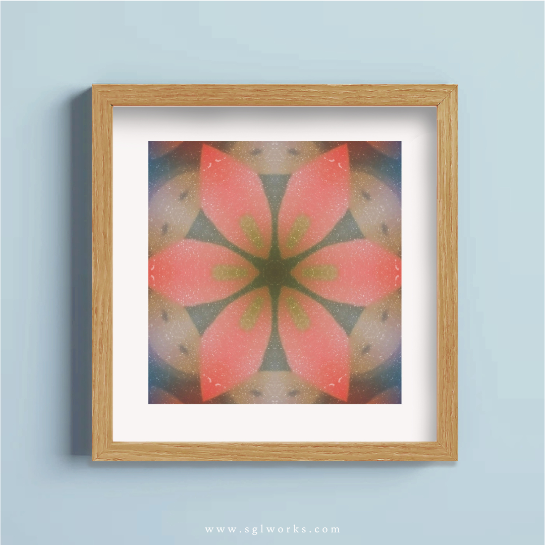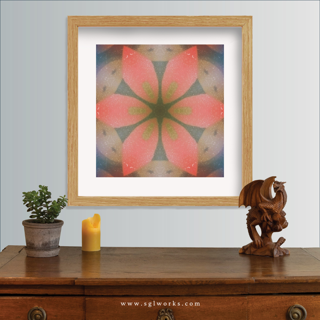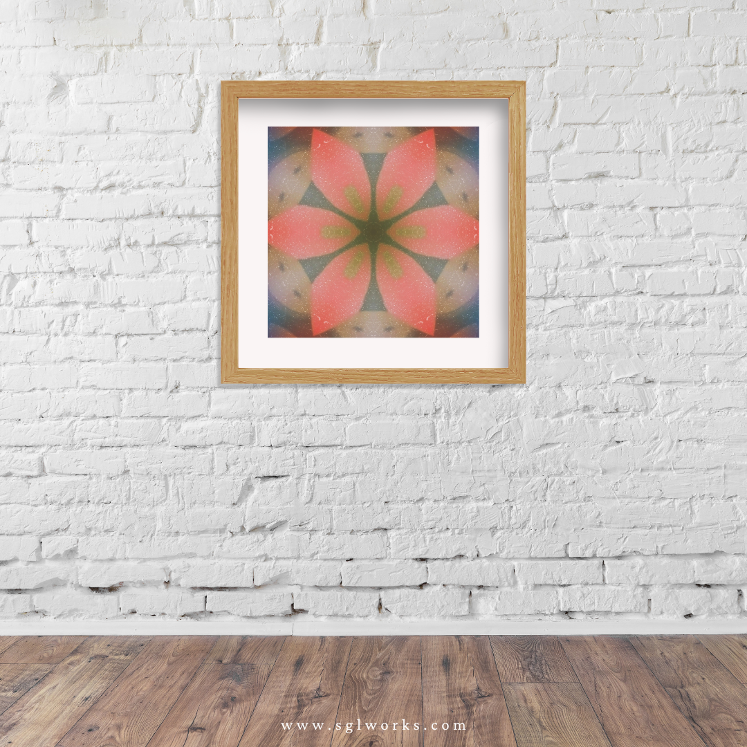 Fine Art Print: archival cotton paper; 2” white mat; 1.25” width Oak or Black Wood Frame; kraft dust cover; hanging hardware